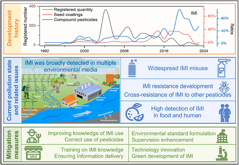 A January 2025 review published in Environmental Pollution (Volume 365, 125394, Source: https://www.sciencedirect.com/science/article/abs/pii/S0269749124021110) delivers a damning indictment of imidacloprid (IMI) -the world’s most-used neonicotinoid insecticide and the flagship product of China’s pesticide industry. Despite being banned or severely restricted across the European Union since 2018–2019 for its devastating effects on pollinators, IMI remains essentially unregulated in China and continues to see rising use.